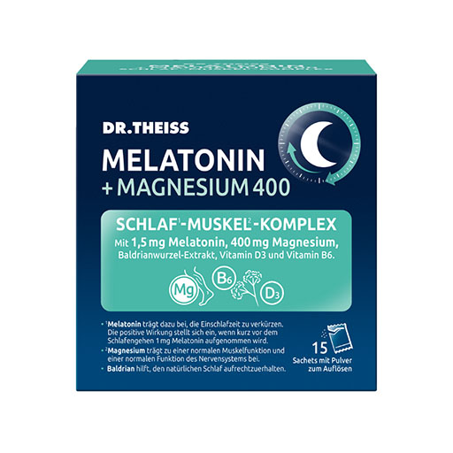 Magnesium trägt zu einer normalen Muskelfunktion und einer normalen Funktion des Nervensystems bei - Es kann dabei helfen die normale Muskelkontraktion und -entspannung zu regulieren. Im Schlaf kann es somit dabei unterstützen ungewollte Muskelanspannungen zu mindern. Damit diese Wirkung schneller eintreten kann, wurde bei der Rezeptur von Dr. Theiss Melatonin + Magnesium Magnesiumcitrat verwendet. Dieses wird vom Körper effizienter aufgenommen und kann somit auch schneller verwertet werden.