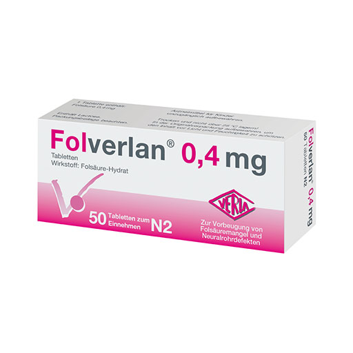 Folverlan® 0,4 mg wird angewendet zur Vorbeugung von Neuralrohrdefekten, insbesondere der Spina bifida („offener Rücken“) und zur Vorbeugung und Behandlung von Folsäuremangelzuständen, die diätetisch nicht behoben werden können.